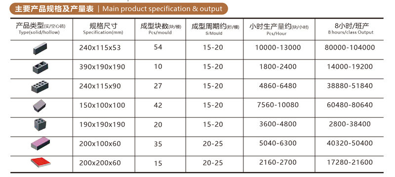 | 磚數(shù)量(塊/8h) | 23562-32400 | 5.2KG/塊 | |