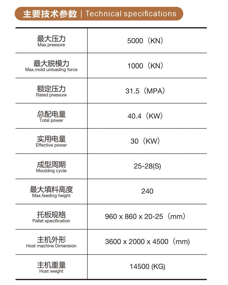 | 最大壓力 (KN) | 5000 | 成型周期 (s) | 25-28 |